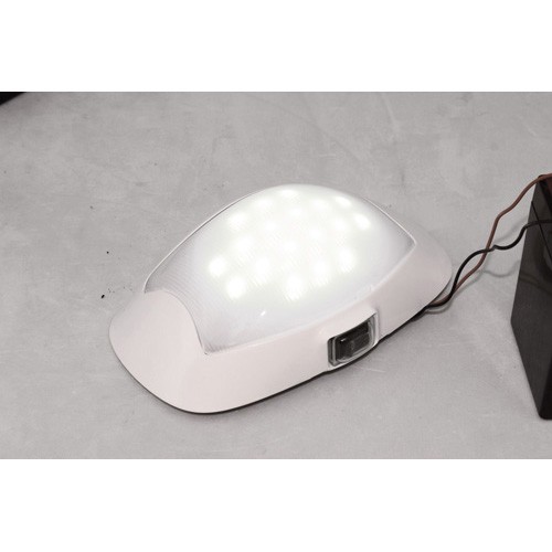 12 white 12 volt LEDs sealed into an IP66 waterproof rated housing. Large clear plastic lens provides ample light distribution. Built-in waterproof on/off rocker switch set into silver grey surround.