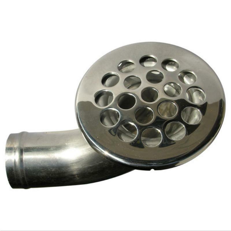 316 Grade stainless steel hose pipe with removable strainer for easy cleaning. Low profile easy clean removable strainer Features large hole size to maximise water flow while covering mounting screws for clean look. Outlet is angled at 90°. Hose size 38mm. Cutout 50mm.
